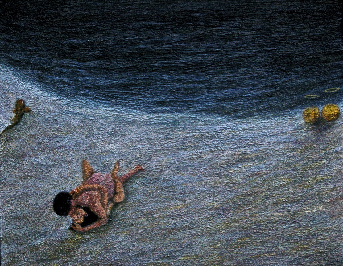Portrait of Eli Smoking, oil on canvas, 50 x 40 cm, (Private Collection)Dreamcomposition 22, Contemplating Rebirth, oil and gold leaf on canvas, 30 x 40 cm.Dreamcomposition 24, Rebirth, oil and gold leaf on canvas, 30 x 40 cm.Dreamcomposition 25, Conception 1, oil and gold leaf on canvas, 40 x 50 cm