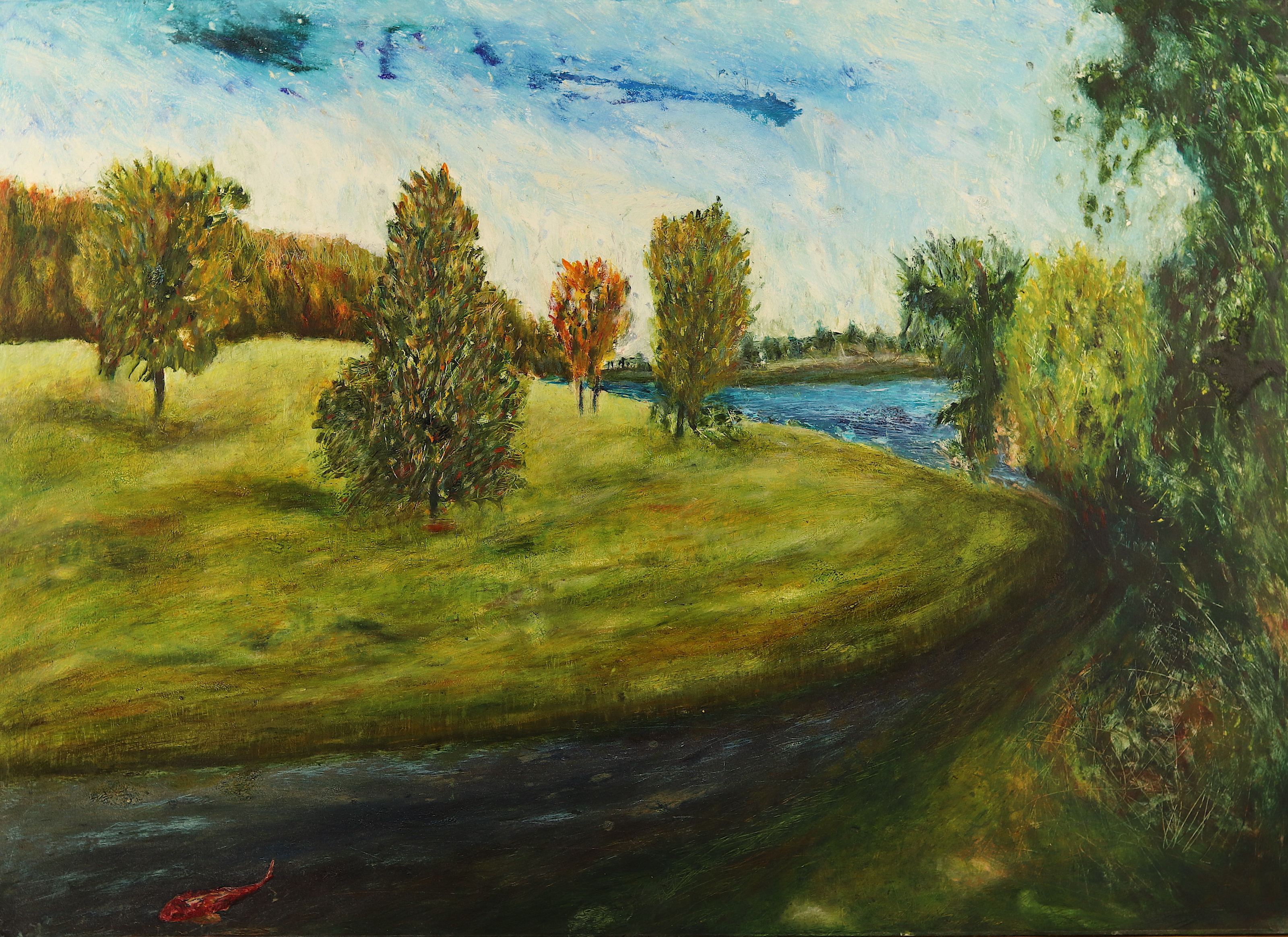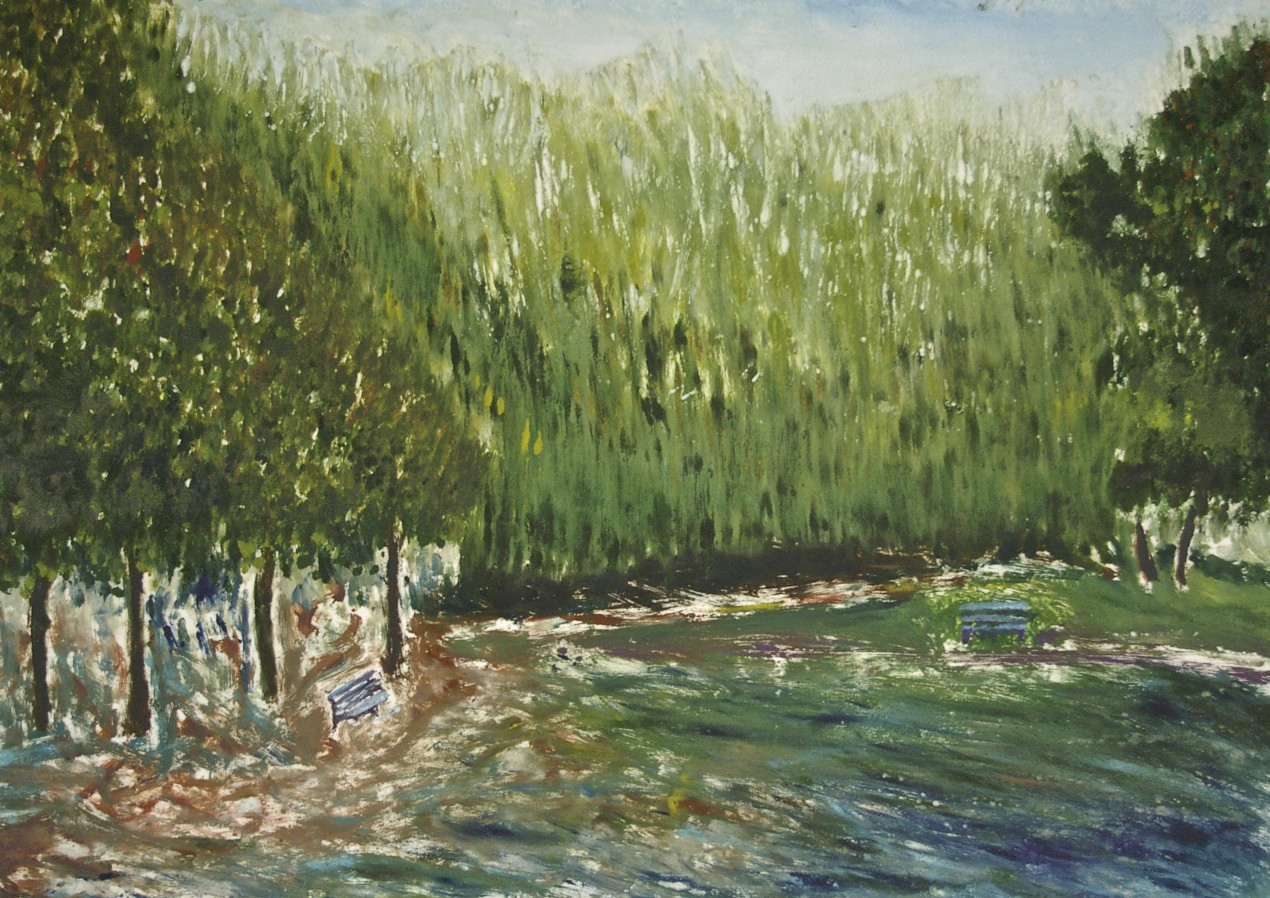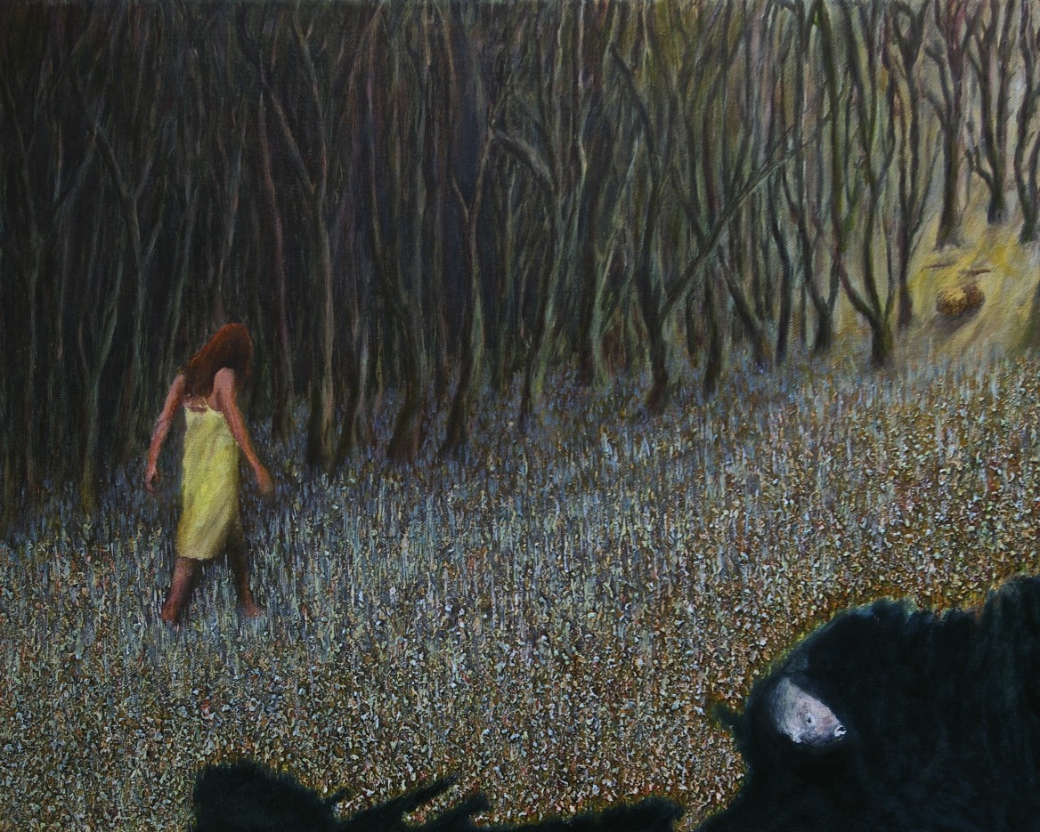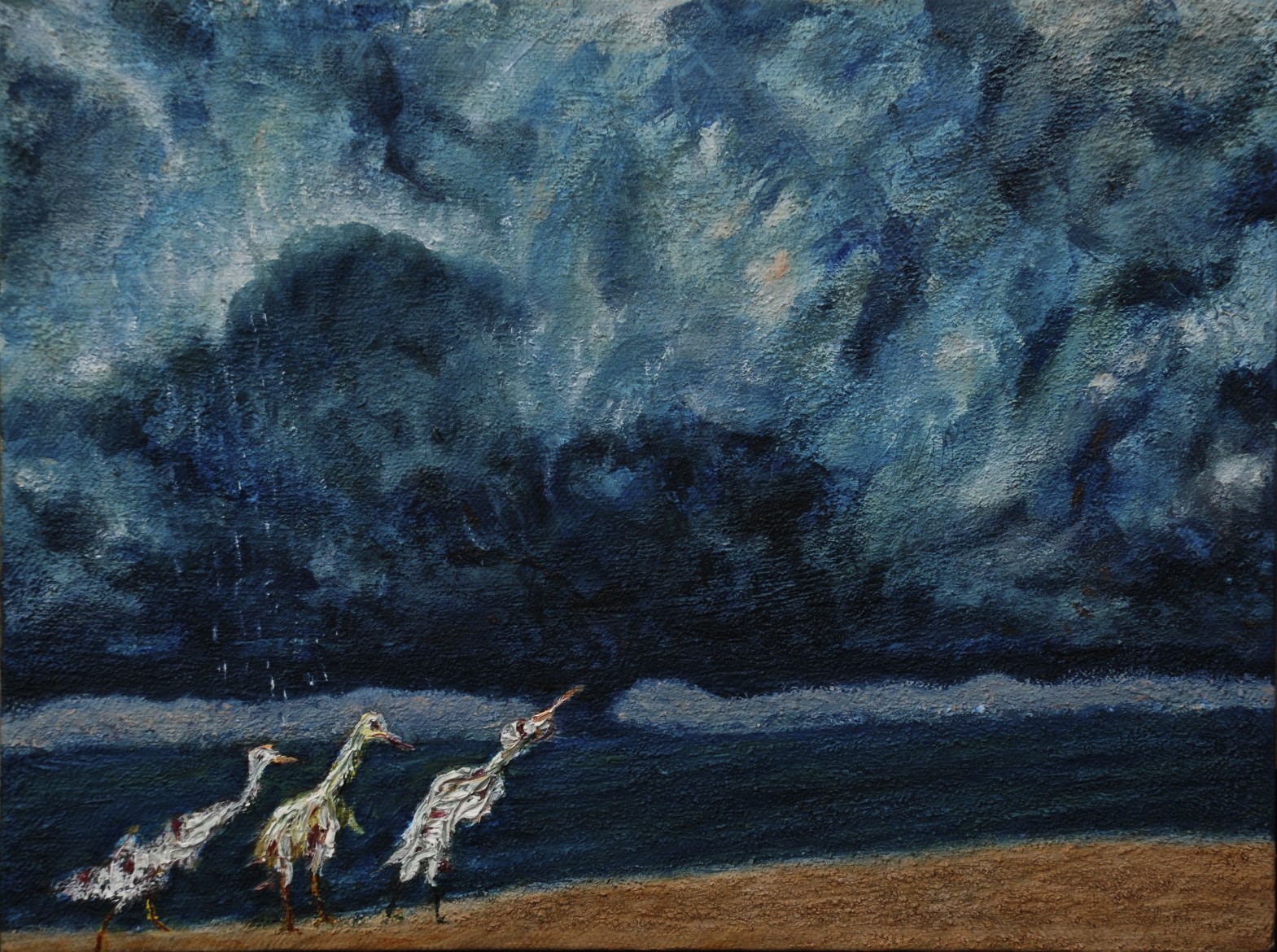 The Flight of Wild Geese at the Curve of a Road, oil on canvas, 80 x 100 cmFishstorm Over Rapeseed Field, oil on paper, 50 x 70 cmWhere the Forest Ends, a Reacuring Memory, oil on Fabriano 350 gsm paper, 50 x 69 cmAngel Pushing a bike, Apparition, oil on 350 gsm Fabriano paper, 50 x 70 cmHidden House on Catalan Mountains, oil on paper, 35 x 50Two Benches at an Approaching Flood, monotype, 49.7 x 69.6 cmBetween Showers, Curragh, monotype, 48.6 x 69.5 cmFlooded Park, monothpe, 49.5 x 69.6 cmFlooded Bench, monotype, 49.7 x 69.1 cmHot Day on the Curragh, monotype, 50 x 70 cm, (private collection)Tree by the Sea, monotype, 49.6 x 69.6 cmStormy Wind before Rain on the Curragh, monotype, 50 x 69.8 cmLone Sheep at the Curragh, monotype, 50 x 69.7 cmUnderwater Parallel, oil and pebbles on canvas, 59 x 84 cm, (private collection)Spirit Walking Towards Light, oil and gold leaf on canvas, 40 x 50 cm, 2011 – 2018Crazed Birds on a Stormy Shore, oil on canvas, 23 x 30.5 cmLevitation Over where Sea Touches Land, oil on board, 14.5 x 42 cmMood 21, oil on textured paper, 45 x 42 cmMood 22, oil on paper, 50 x 40.5Mood 23, oil on paper, 55 x 55 cmMood 6, ink on Fabriano paper, 15 x 10 cmMood 10, ink on Fabriano paper, 15 x 10 cmMood 12, ink on Fabriano paper, 15 x 10 cm