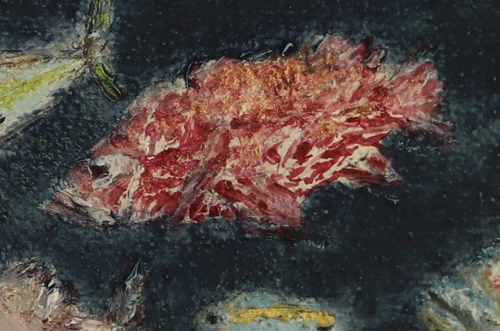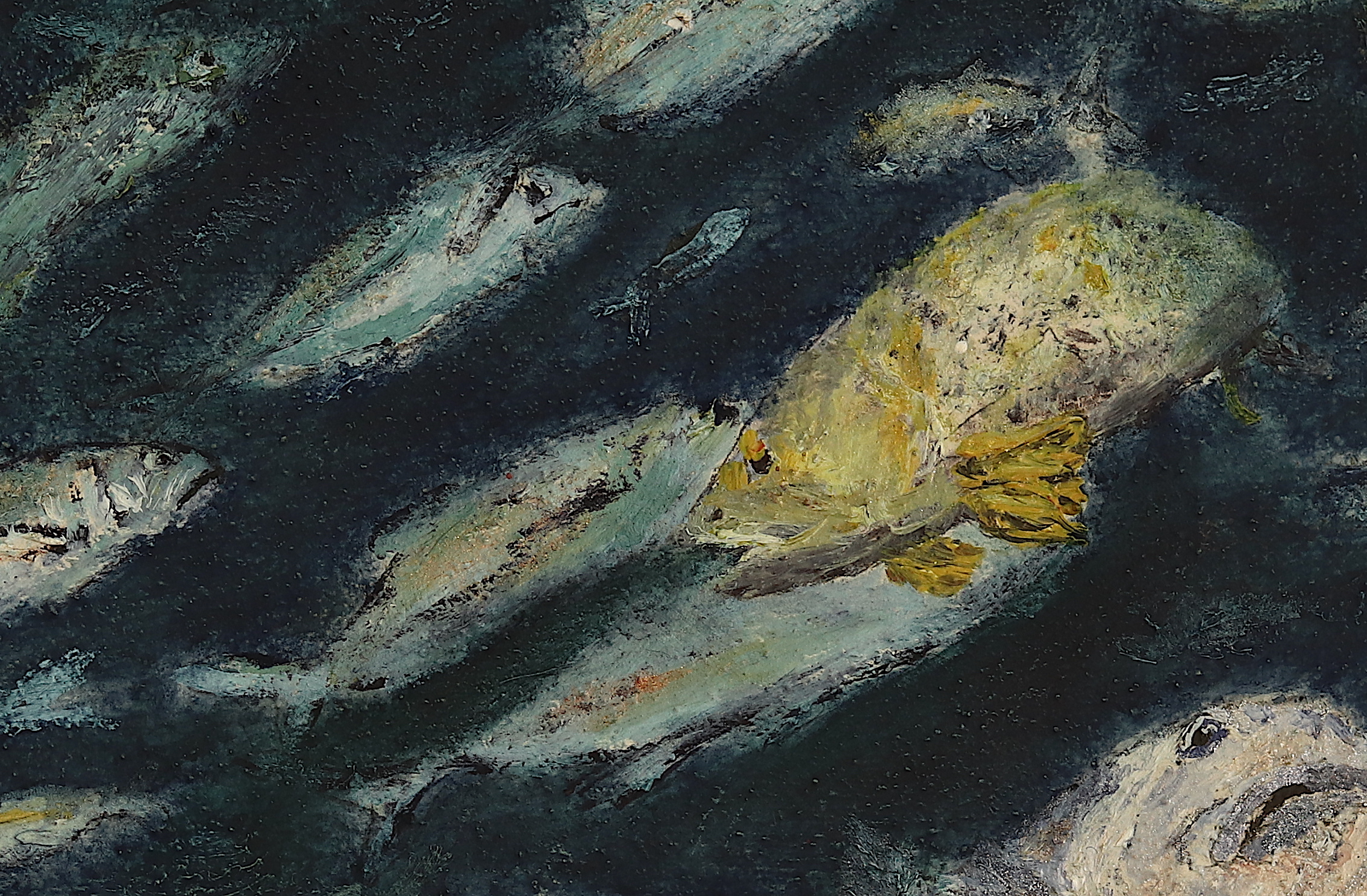 Farewell To a Loved One, oil on canvas, 102 x 153 cm, 2020 – 2021Farewell to a Loved One, detailFarewell to a Loved One, detailFarewell to a Loved One, detailFarewell to a Loved One, detailFarewell to a Loved One, detailAs Winter Approaches, etching, 16 x 30.7 cm, edition of 50Overflow 1, oil on canvas, 26 x 36 cm, July 2021Morning Study at Home, three states hard ground etching, drypoint and buring, 13 x 12 cm, edition of 50Mood with Hunted Fish, (mood 60), oil on embossed Somerset paper, 51 x 51 cm, July 2021Care, Mood with Black Cat, (Mood 59), four states hard ground etching with dry-point, 22 x 19 cm, June 2021Late Winter Mood, (mood 58), four states hard ground etching, 12 x 12 cm, March 2021Mood 44, multi-states hard ground etching, 12.5 x 9.7 cm, January 2021