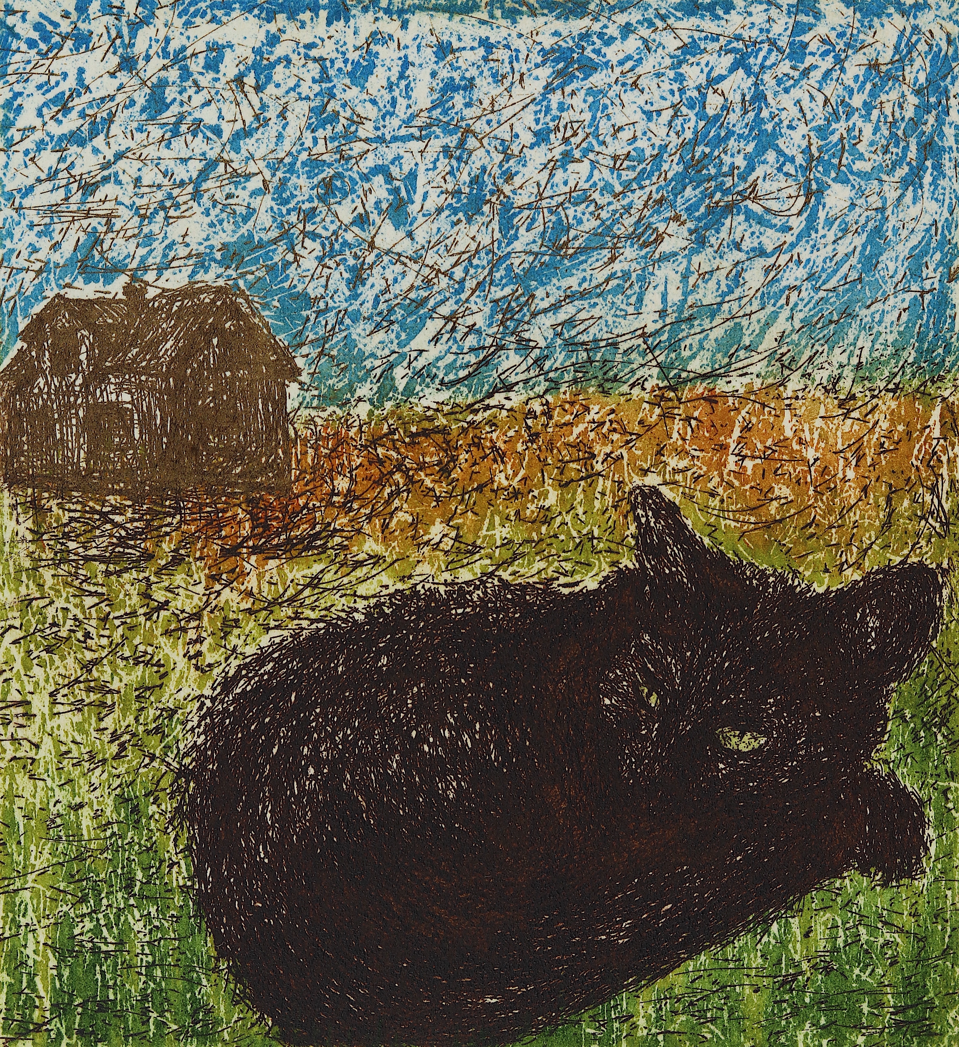 Summer Cat, etching, 7 x 12.5, edition of 50
